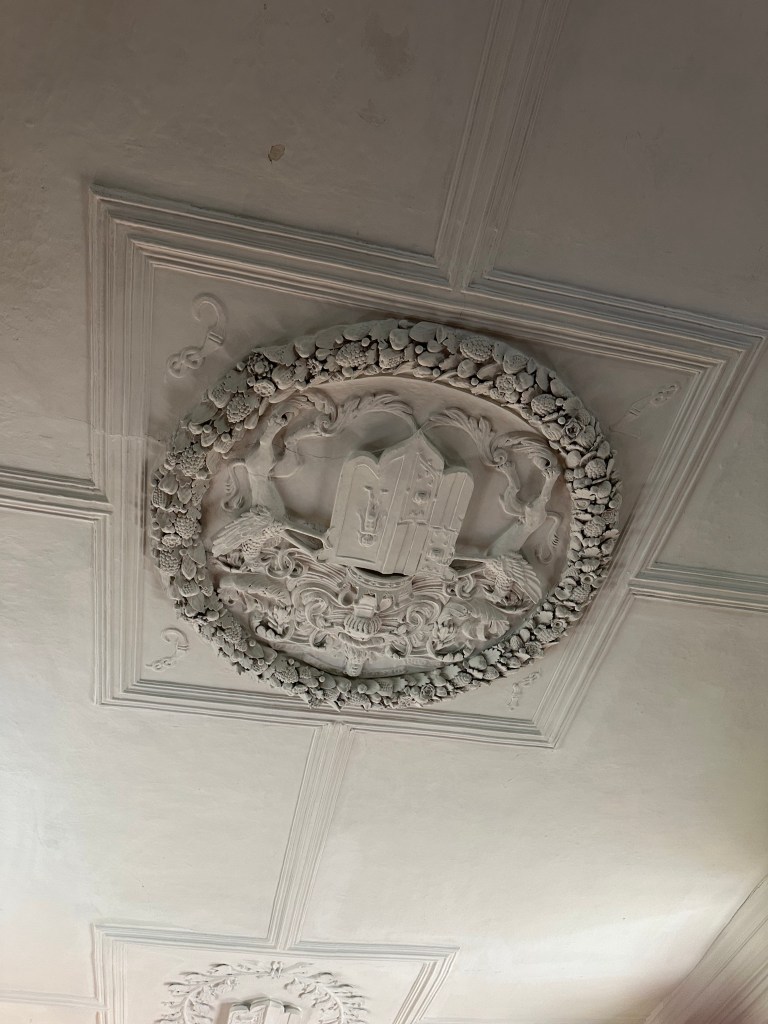 We arrived at Kellie Castle down a tree lined drive. It was otherwise in a field and not particularly impressive as castles go BUT I L. O. V. E. D. it. First of all it had the initials MH as on the outside and I love some MHs. Then a young man (was he nebbish? Maybe but cute) gave us a tour. The history of the erection of the towers was interesting in that well-I’m-here-so-I-might-as-well-learn-something way. But inside was the surprise. Magnificent paintings, plaster work, furniture, and needlepoint. The family that bought the castle and tried to restore it was uber talented. Rooms of glorious ceilings, hand built furniture, and breathtaking art. Just hanging around. Afterwards we strolled the gardens and perused the gift shop.